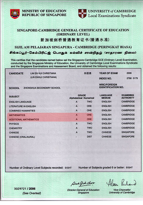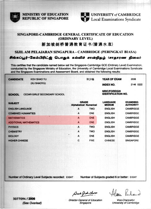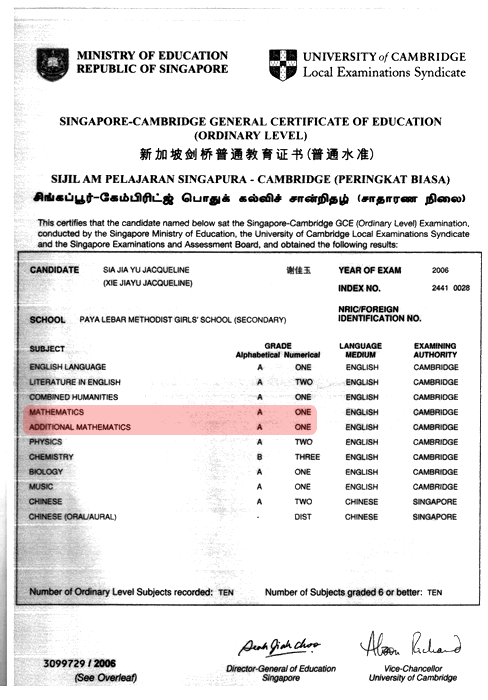 Needless to say, under Ms Loi, I progressed tremendously and in my preliminary examinations a month later, I actually scored A1s for both my Amaths and Emaths. With these results, my L1R5 was 6 points and I managed to get into Raffles Junior College. I must say that I really have Ms Loi to thank for such excellent results and I do hope I won’t let her down when the O level results are out.